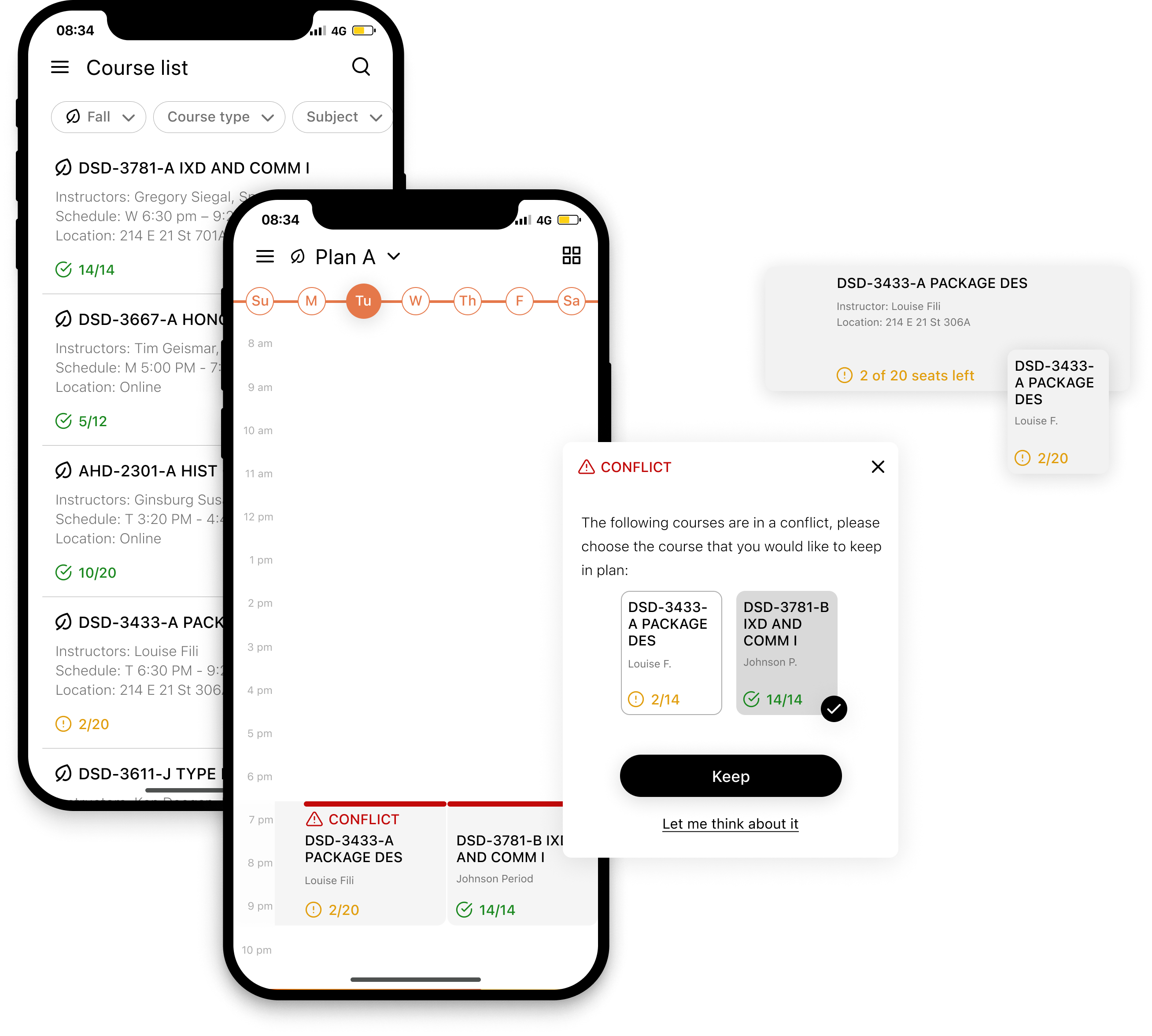 Real time updates on course availibility status shows on every level of information, and course conflict reminders can avoid failure on register by keeping the awarness to plan and adjust ahead.